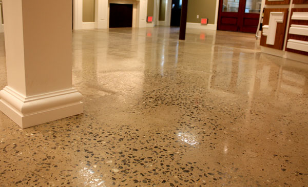 Jamison began by cleaning the floor with mild acids, detergents and degreasers as needed. Once clean, a graduated grinding process began, moving from 30-grit to 150-grit metals. After the deteriorated concrete had been removed, and the underlying black aggregate was exposed, a Consolideck hardener / densifier was applied, and again buffed using a graduated series of 100-grit through 1500-grit diamond resin pads. A final coat of LS Guard was applied with a diamond-impregnated pad, achieving the desired result of a clean, fortified, high-gloss polish finished.