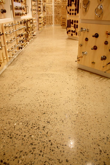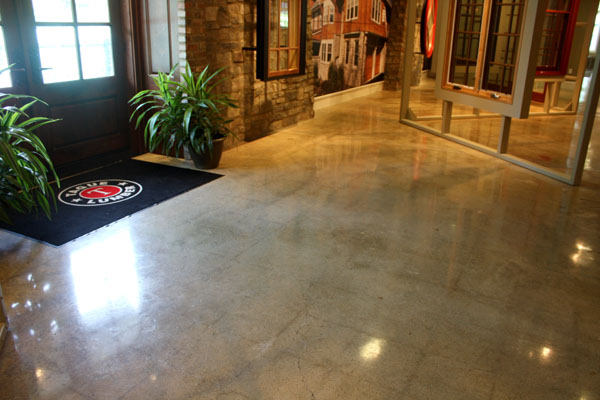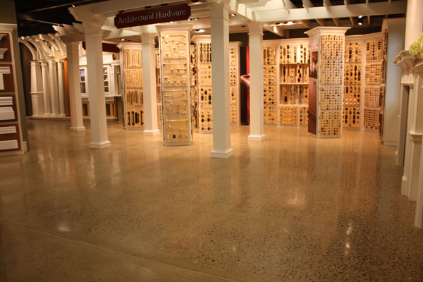 Jamison Masonry Restoration was contracted by Tague Lumber Company to evaluate, restore, and rejuvenate the concrete floor of their Malvern showroom. Many areas of the existing floor had spalled concrete, crumbling expansion joints and VCT grid lines.