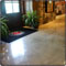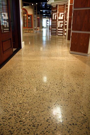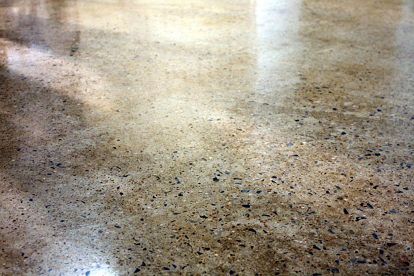 Jamison began by cleaning the floor with mild acids, detergents and degreasers as needed. Once clean, a graduated grinding process began, moving from 30-grit to 150-grit metals. After the deteriorated concrete had been removed, and the underlying black aggregate was exposed, a Consolideck hardener / densifier was applied, and again buffed using a graduated series of 100-grit through 1500-grit diamond resin pads. A final coat of LS Guard was applied with a diamond-impregnated pad, achieving the desired result of a clean, fortified, high-gloss polish finished.