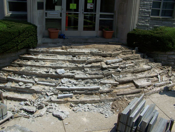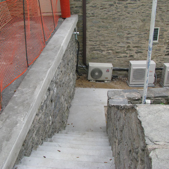 Jamison Masonry has performed a variety of projects for Chestnut hill over the years. Some projects included the full replacement of existing flagstone steps with new custom cut flagstone treads at Logue Library, the installation of new concrete to replace severely deteriorated flagstone steps and walkways at the dormitories on the ancillary Sugar Loaf Campus, as well as several smaller maintenance repair projects. |
