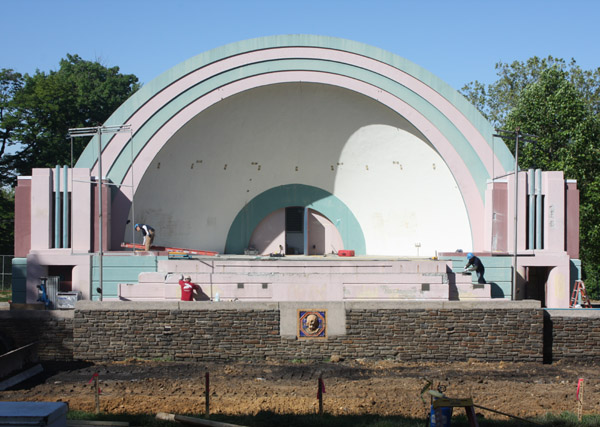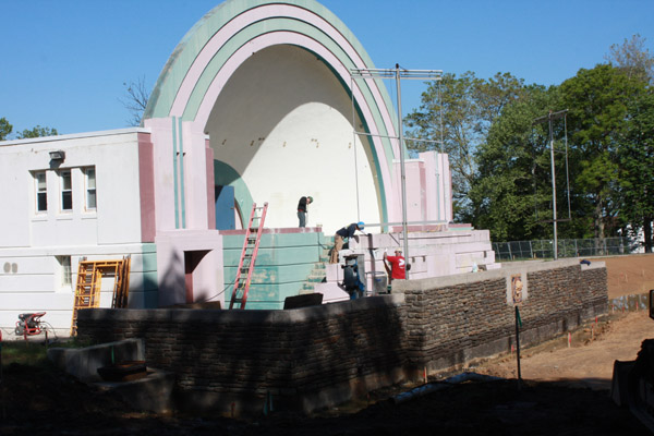 Jamison Masonry won the historical restoration of the Reading Bandshell through Uhrig Construction. The project consisted of masonry cleaning, stone pointing and replacement, selective concrete repair, latex modified cementitous overlay to the stage floor, and a complete restoration of the terra cotta medallion at the front wall.