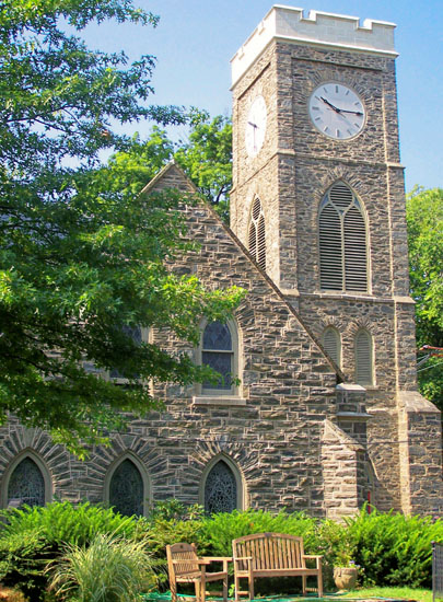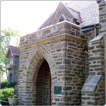 Jamison Masonry Restoration has performed full-scale stone pointing on many elevations of this Elkins Park church over the past several years, as well as the entire clock tower. |